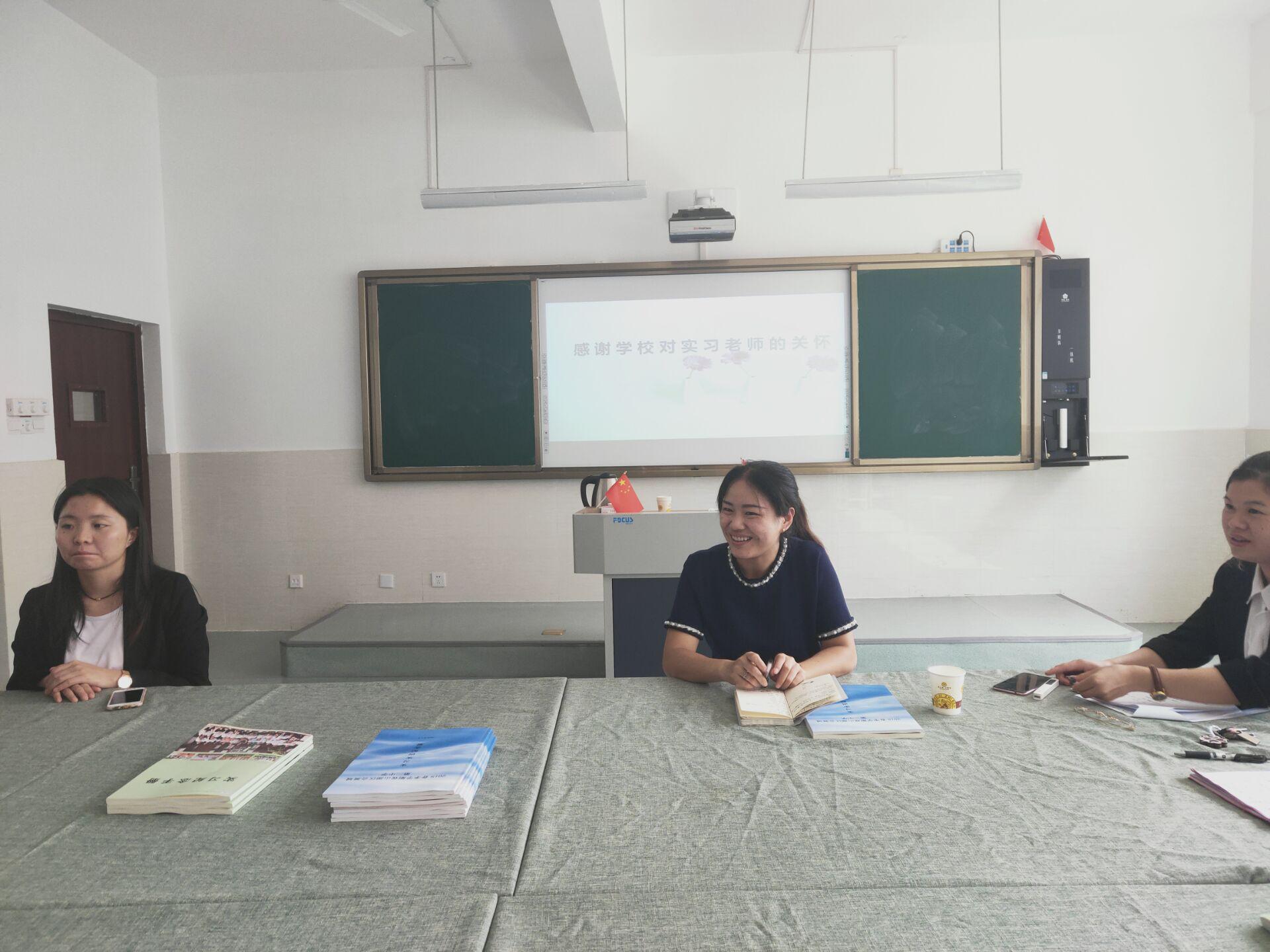 首先,胡娟校长对刘崇华老师的到来表示热烈欢迎,并就以下几点内容进行重要发言:一、对我校学生的实习工作表现给予肯定和表扬;二、就会展二中的住宿情况与基础设施进行说明;三、介绍实习学生的进班情况、处室工作情况以及接下来几个月的实习工作安排。紧接着,会展二中的杨华老师具体介绍了实习学生的工作安排及表现情况,她欣慰地表示,在这一个月的实习中,师院学生表现良好,做事积极,有不怕苦、肯吃苦、能吃苦的精神,值得表扬和鼓励。会中,刘崇华老师认真听取了实习单位的意见和建议,向实习单位给予我院实习工作的支持和帮助表示真挚感谢。